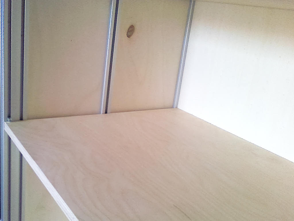 Hier wurde mit den Profilen ein Doppelboden im Fahrzeug realisiert. Darunter ein fahrbares Gestell mit 600×1200×1200 mm. Die Kosten liegen bei ca. 350 € – je nach Ausstattung und Größe. Gewicht: 17 kg bei 17 lgm Profil-Verbinder, Versteifung und Rollen. Der Versand ist problemlos.